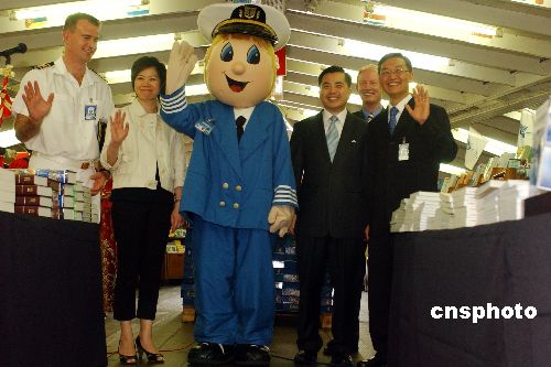 9月11日,香港律政司司长黄仁龙(右三)在尖沙咀主持“忠仆号”开幕典礼 ,他鼓励市民继承、发扬“忠仆号”为大众服务的精神。世界上最古老的航邮轮“忠仆号”,共有320位来自50多个国家 (包括香港) 的义工,犹如一个小型联合国。该船致力推广全球教育,在船上举办全球最大型的流动书展,至今已到访超过100个国家,迎接了近2,000万名访客上船参观。中新社发 蔡蔓莉 摄