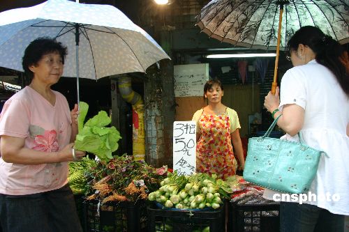 9月18日,强台风“韦帕”来袭台湾,台北市菜价微幅上涨。预计台风过境会影响蔬菜生长,价格在风雨后会有明显上涨。中新社发 崔煜芳 摄