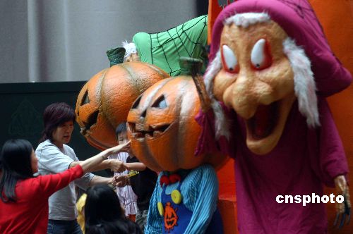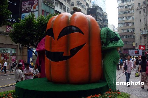 10月12日,香港时代广场装饰鬼怪精灵,迎接一年一度万圣节的到来。中新社发 谭达明 摄