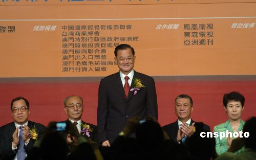 十月十七日,中国国民党荣誉主席连战出席在澳门旅游塔举行的第四届世界华商高峰会并以“以坚固核心充实紧密网路”为主题进行演讲。中新社发 史利 摄