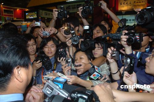 十月十八日,众多媒体记者在威尼斯人会展中心举行的第十二届澳门国际贸易投资展览会(MIF)上,争抢采访某省的负责人。规模宏大,盛况空前的第十二届澳门国际贸易投资展览会(MIF),以努力打造成国际贸易平台为己任,引起了新闻媒体的极大关注。中新社发 史利 摄