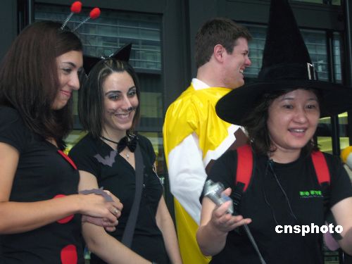 西方社会传统的万圣节将至,10月30日,在台北市著名百货公司新光三越店门口,时尚一族提前秀起了“鬼脸”。中新社发 王林 摄