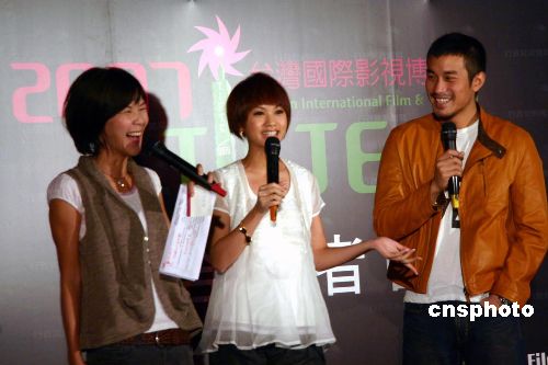 台湾影视博览会将于下月十日开幕,届时将逐一举行“金马奖”颁奖、“数位短片竞赛”等多项活动。据悉,大陆知名导演李少红、胡雪桦等一百二十余名影视界人士将参加为期一个月的此次博览会。担纲形象大使的台湾影星杨丞琳(左二)、张孝全(左三)为影视博览会拍摄主题宣传片“一拍即合”。图为10月31日,他们在台北记者会上亮相。