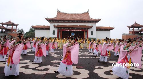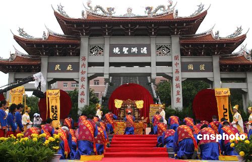 11月1日,第九届中国·湄州妈祖文化旅游节在妈祖故乡福建省莆田市湄州岛开幕,妈祖文化旅游节上举行了隆重的妈祖祭典仪式。中新社发 张勤 摄