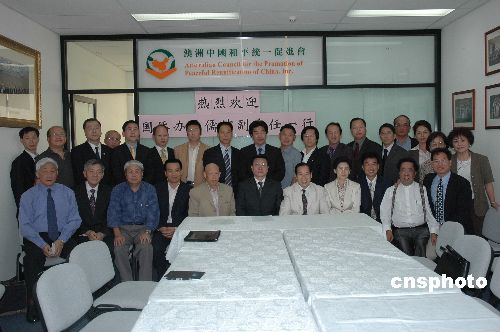 11月5日,中国国务院侨务办公室副主任马儒沛(前排左六)一行访问澳洲中国和平统一促进会,与侨领们座谈并合影。中新社发 葛明 摄