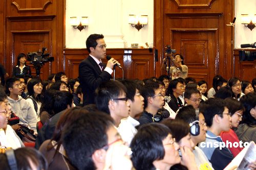 十一月八日晚,香港立法会港岛区补选辩论会在香港大学校园举行,八名候选人齐齐参加,向公众介绍政钢,并接受公众提问。该活动由香港大学学生会及该学生会社会科学学会政治及公共行政学会举办。图为学生向候选人提问。中新社发 王丽南 摄