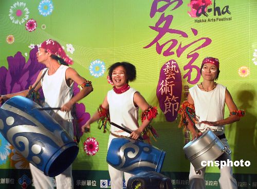 十一月十二日,台北“身声演绎剧场”成员以锅碗瓢盆等生活器皿融入打击表演。主办方表示,这项活动提供了客家艺术活动空间,让传统客家元素与现代展演形式融合,客家艺术不断以创新面貌呈现。二00七年客家艺术节在十一月十七日到十二月二十九日期间在台北举办。中新社发 刘舒凌 摄