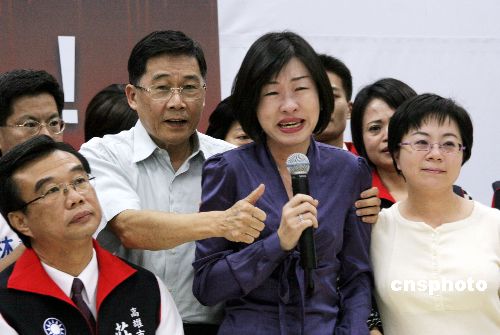 11月16日,高雄市长选举官司在当地二审定谳。代表中国国民党的候选人黄俊英(中)在选举无效和当选无效两项诉讼中均遭判败诉。民进党的陈菊在去年12月9日胜出担任市长后,今次获承办法官支持继续担任市长。今年6月15日,该官司一审曾判,选举有效,但陈菊当选无效。图为在竞选总部记者会上,辩护律师伤心落泪,黄俊英趋前安慰。中新社发 黄少华 摄