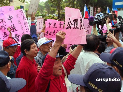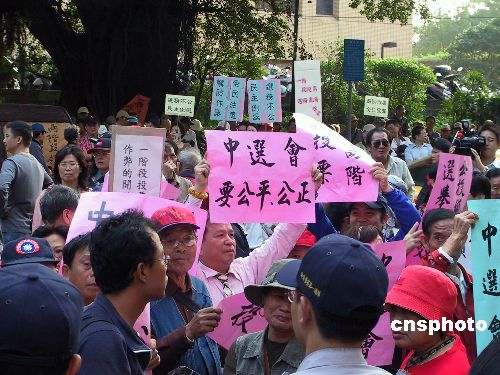 台湾“中选会”委员会议十一月十六日晚表决确定,明年“立委”选举合并两项“公投”举行,将采“分桌领票、一阶段投、圈票方式”进行,投错票匦选票属有效票。图为当天下午台湾民众到“中选会”所在办公大楼下表达诉求,希望选举能公平公正进行。据了解,在“中选会”的一项意见调查中,台湾二十五县市选委会当中的多数支持“二阶段领、投票”模式。中新社发 刘舒凌 摄