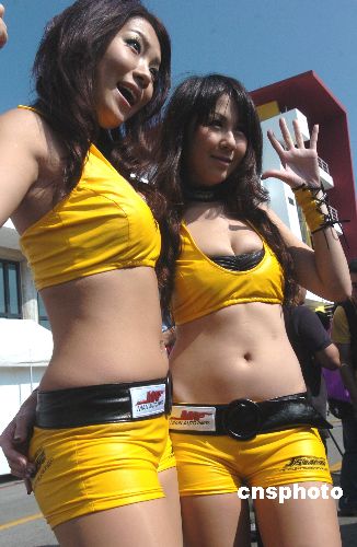 十一月十七日,在澳门举行的第五十四届澳门格兰披治大赛车上美女如云。图为新葡京安排的赛车女郎将现场气氛推向高潮。中新社发 史利 摄