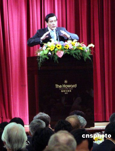 11月29日,马英九应美国、欧洲等四大在台商会之邀在台北发表专题演讲,提出两岸直航等经济议题,吸引外商。中新社发 黄少华 摄