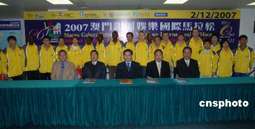 2007澳门银河娱乐国际马拉松赛十一月三十日在澳门运动场举行记者会,本届比赛将于十二月二日举行。来自各国各地区及本澳的两千七百多选手将参加全程马拉松、半程马拉松及迷你马拉松三个项目的比赛。一年一度的国际马拉松赛不仅是一项重要的国际体育赛事,已成为澳门市民一项重要的节庆活动。图为部分选手在记者会上合影。中新社发 史利 摄