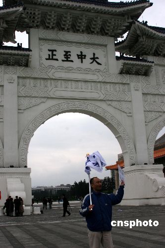 台北“中正纪念堂”是否改名引发的争议,延伸至堂前广场上的“大中至正”牌匾。十二月四日下午,台北市民自发前往“中正纪念堂”,抗议台湾当局有关部门做出将要拆除“大中至正”牌匾的决定。中新社发 陈国华 摄