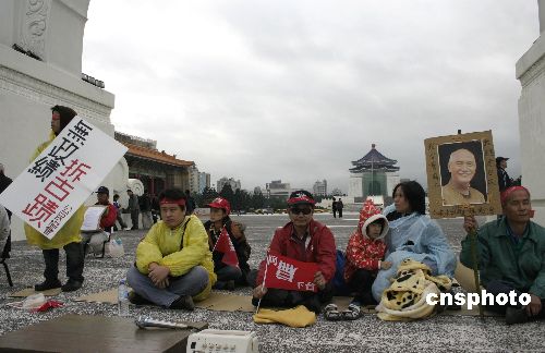 十二月六日上午,几十位民众继续聚集在台北市“大中至正”牌楼下,以演讲、唱歌等方式抗议当局将拆除“大中至正”牌匾。中新社发 陈国华 摄