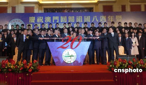 十二月六日晚,澳门晋江同乡会在威尼斯人宴会厅举行联合晚宴,庆祝澳门回归八周年暨澳门晋江同乡会成立二十周年,四千多位海内外各界人士出席。中新社发 史利 摄