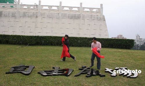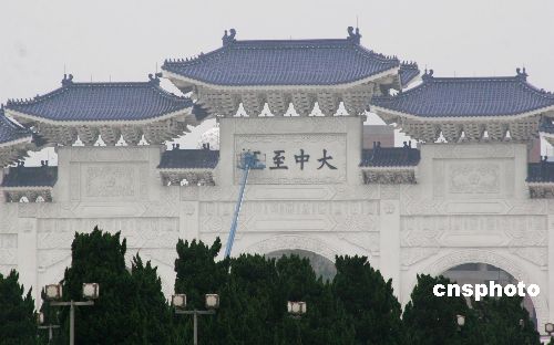 十二月七日上午,台北中正纪念堂前牌坊上的“大中至正”牌匾被拆除,将换成“自由广场”四字,同时“中正纪念堂”也将改为“台湾民主纪念馆”。中新社发 陈国华 摄