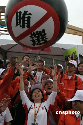 十二月十五日,台北士林地检署在天母运动公园举办“万人反贿选”大型宣导活动,以人体骨牌挑战吉尼斯世界纪录。中新社发 董会峰 摄