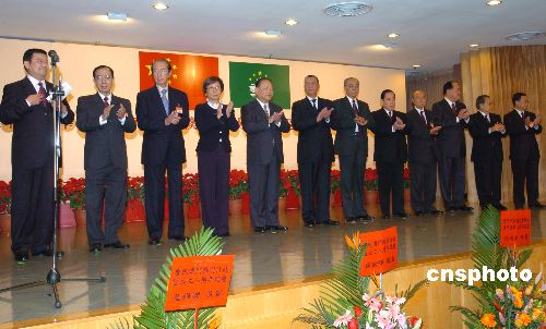十二月十九日,澳门中华总商会在商会礼堂举行庆祝澳门特别行政区成立八周年酒会。澳门特首何厚铧、中央人民政府驻澳门特别行政区联络办公室主任白志健等嘉宾出席酒会。宾主共同庆祝澳门回归祖国八周年,庆祝澳门特别行政区成立八周年。中新社发 史利 摄