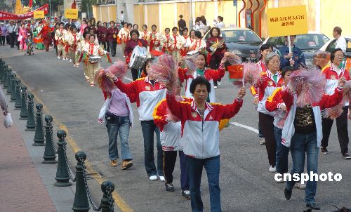 十二月二十日,澳门北区社团组织了庆祝回归祖国八周年大巡游,两千余名市民沿街载歌载午,欢庆澳门明天会更美好。 中新社发 史利 摄