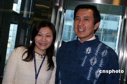 前台北市长马英九特别费案,将于二十八日二审宣判。马英九重申,他对他的清白有信心,对法院的公正有期待。图为十二月二十七日,马英九在出席一个公开活动后,与台北县一名女员工合影留念。中新社发 董会峰 摄