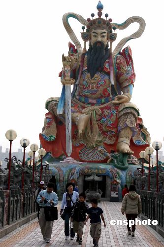 图为元旦节前人气颇旺的元帝庙,这里拥有东南亚最高水上神像——“北极玄天上帝”。