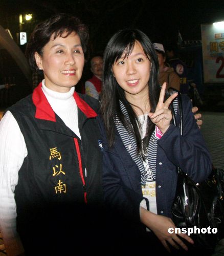 一月十日晚,马英九大姐马以南出席“立委”候选人周守训拉票造势晚会,为周参选加油、打气,图为现场一位马英九的支持者与她合影。台湾“立委”选举在即,选战已进入白热化。中新社发 孙自法 摄