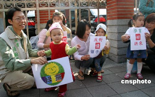 一月十一日,为动植物代言、以环保诉求为特色的台湾绿党,在台北“立法院”门外举行选前造势活动,带着一群没有投票权的孩童,呼吁选民为下一代投票给绿党。台湾“立委”选举只剩最后一天,岛内大小党派开始选前冲刺。中新社发 孙自法 摄