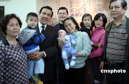 一月十三日,中国国民党二00八年台湾“大选”参选人马英九,在结束拜谒蒋经国陵寝行程后,顺便走访桃园县大溪老街。中新社发 孙自法 摄