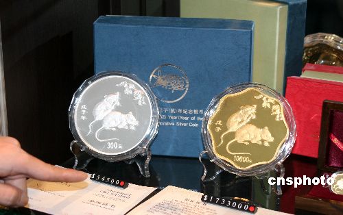 由中国台北奥委会、台湾大洋金银币有限公司主办的“二00八年北京第二十九届奥运会纪念金银币慈善拍卖会”将于一月二十七日在台北诚品书店信义店展演厅举行。图为大洋金银币有限公司提供,将在拍卖会上拍卖,由中国人民银行发行的二00八鼠年一公斤纪念金币、银币。中新社发 陈立宇 摄