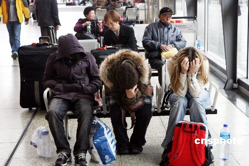 一月二十七日,本应二十六日下午三时搭乘T98次京九直通车返京的旅客滞留红磡车站。由于天气原因,T98次京九直通车二十七日下午二时后才驶离香港红磡车站,比原定日期延误一天。中新社发 武仲林 摄