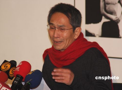 2月13日,台湾第一个职业舞团“云门舞集”遭火灾后,其创办人林怀民在台北首次召开记者会,谈及火灾造成的巨大损失不禁泪流满面。中新社发 耿军 摄