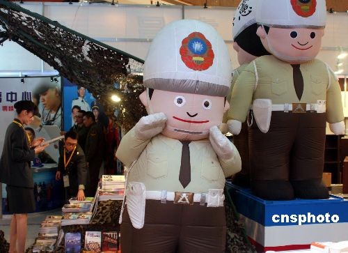 2月中旬,台北国际书展今年首设“军事图书区”,二十五家军事出版社及台湾军事管理部门参展。由“阿兵哥”扮装的“宪兵娃娃”吸引民众驻足,意外成为书展热点。中新社发 耿军 摄