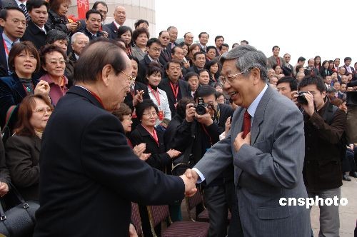 2月19日,全国人大副委员长许嘉璐在福建福州会见前来参加“海峡西岸闹元霄,全球华人盼团圆”活动的台港澳侨胞代表,并发表重要讲话。中新社发 郑祚声 摄