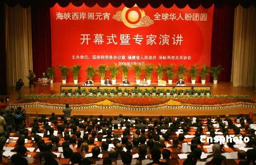 2月19日,来自世界40多个国家和地区的500多位海外侨胞、台湾同胞、港澳同胞齐聚福建福州,出席由国务院侨务办公室、福建省人民政府和海峡两岸关系协会共同主办的“海峡西岸闹元宵 全球华人盼团圆”盛大活动。中新社发 张勤 摄