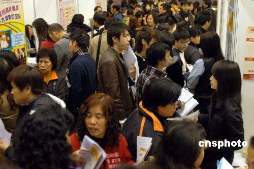 二月十九日,香港餐饮联业协会与劳工处一连两天在天水围天晴社区会堂举办招聘会,为求职人士提供逾二千四百个职位空缺,月薪介乎五千至九千元。中新社发 谭达明 摄