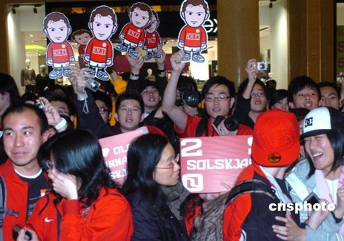 二月二十日,众多澳门球迷在威尼斯人度假村酒店争赌曼联球星的风采。当日,曼联球星索尔斯克亚专程来澳门参加『曼联旗舰店』的开业仪式。『曼联旗舰店』专门销售足球服饰及配件、品牌足球及各类纪念品,让顾客感受『曼联体验之旅』。中新社发 史利 摄