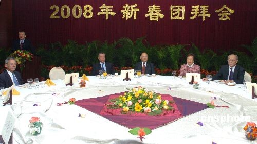 二月二十一日晚,中央人民政府驻澳门特别行政区联络办公室在新竹苑举行2008年新春团拜会,宴请澳门地区全国人大代表和政协委员。澳门特首何厚铧、中联办主任白志健出席新春团拜会。中新社发 史利 摄