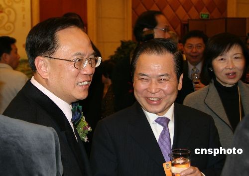 三月四日晚,香港特区行政长官曾荫权在北京饭店举行酒会,宴请参加两会的香港全国人大代表和全国政协委员。十届全国政协副主席董建华、国务院港澳办副主任陈佐洱、香港中联办主任高祀仁出席酒会。中新社发 齐彬 摄