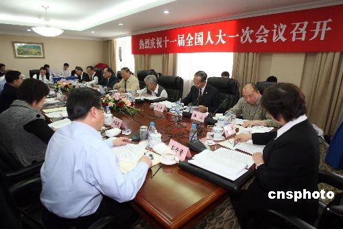 3月5日,出席十一届全国人大一次会议的澳门代表团举行全体会议,审议政府工作报告。中新社发 张宇 摄