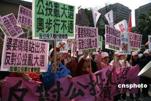 3月6日,三八妇女节前夕,台湾妇女团体在台湾“立法院”前发起“真爱台湾,反公投入联”活动。中新社发 曾嘉 摄