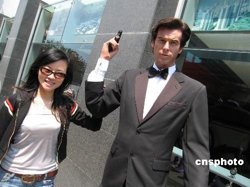 图:访港游客与007电影主角蜡像合影