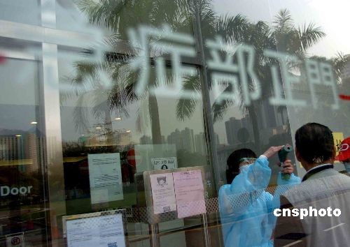 三月十一日,香港屯门医院为进入急症室者事前须探热及洗手消毒。屯门医院近日成为流行性感冒压力下的重灾区,因应求诊人数增加及流感高峰期,在急症室实施发烧病人分流措施,预防流感扩散。中新社发 谭达明 摄