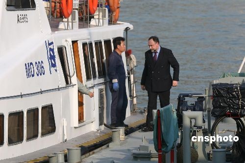 三月二十四日下午﹐抵达香港跟进拯救失踪船员的乌克兰驻华大使谢尔盖·卡梅舍夫在接受记者采访时表示,香港的救援人员已经尽全力拯救,乌克兰总统尤先科及乌克兰政府感谢救援人员所作的努力。二十二日晚﹐香港国际机场以东的大小磨刀洲海面发生严重撞船意外,一艘乌克兰注册的油田补给船与一艘内地货船相撞﹐补给船迅速翻沉﹐七名船员获救﹐十八名乌克兰船员随船一并沉落在三十七米海底﹐至今下落不明。中新社发 武仲林 摄