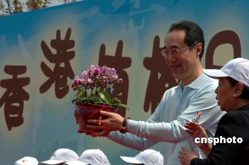 三月二十九日,香港举行植树日活动,香港政务司司长唐英年及全国政协副主席董建华夫人董赵洪娉,应邀担任“二00八香港植树日”活动的主礼嘉宾。中新社发 谭达明 摄
