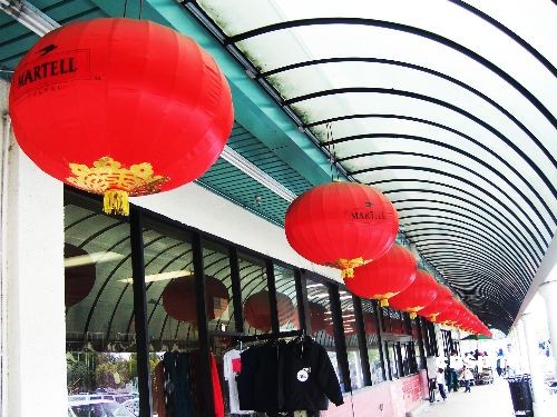 洛杉矶中国商店挂起大红灯笼迎接奥运圣火