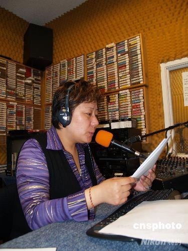 4月16日,美国南加州40多个华人社团共同发出“抗议CNN辱华事件呼吁书”,一致要求CNN及卡佛蒂本人必须立即向全世界华人进行公开的、正式的、具有诚意和忏悔的道歉,消除此一恶劣影响。图为洛杉矶华人电台AM1370播音员予馨正在播报《抗议CNN辱华事件呼吁书》。 中新社发 卢威 摄