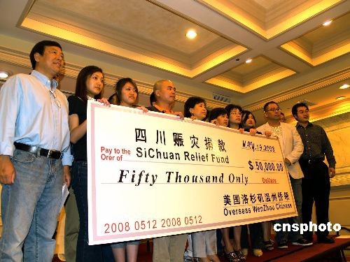 洛杉矶温州侨领向汶川地震灾区募款5万6千美金