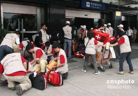 结束在四川地震灾区五天的医疗救援工作后,台湾红十字医疗队一行三十七人,五月二十五下午乘飞机离开四川,返回台湾。中新社发 齐彬 摄