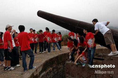 5月30日,前来参加两岸中学生夏令营的马祖高级中学师生正在参观长门炮台。长门炮台是目前中国保留下来的最古老的最大的炮台,它始建于明崇祯年间,位于连江县馆头镇长门村电光山上,历经了数次战火洗礼,扼守闽江口第一要隘。中新社发 王东明 摄