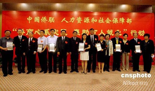 5月30日,“侨商心系灾区 襄助万人就业”行动在北京启动。中国侨联主席林军、人力资源和社会保障部副部长张小建、中国侨联副主席林明江、李祖沛、林淑娘、董中原以及北京、重庆、广东、江苏、浙江、四川、江西、河北等省市侨联、侨商会、侨商企业家的代表出席了启动仪式。启动仪式上,四川省侨联代表介绍了灾情和灾区人员安置需求情况,中国侨商联合会代表北京华商会、重庆华商会、江苏侨商总会、广东国际华商会、浙江华商会、四川华商会等七家侨商组织向广大侨商企业家及社会各界企业家发出了开展援助灾区群众就业的倡议。到会的侨联、侨商会及侨商企业家代表积极响应倡议,现场与四川省侨联签订就业援助岗位意向13700名。中新社发 张勤 摄